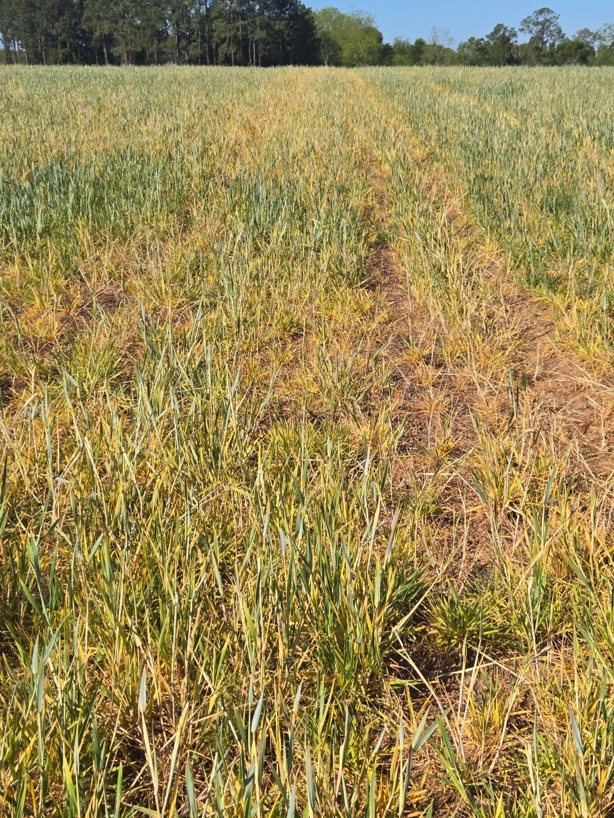 Cereal grains are grasses, and grasses have dense, fibrous root systems that aggressively compete for soil moisture. When rainfall is limited, as it often is in spring, those roots rob clover of the water it needs to surge into growth.